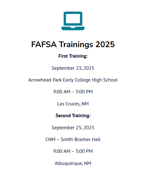 Join us for a Mega FAFSA Day at San Juan College where students and families can get expert help completing the FAFSA, explore scholarships, and access resources to make college more affordable. Whether you’re a high school senior, current college student, or an adult learner – this event is for you!